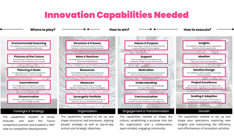 For organizations that hope to emulate benchmarked practices within the Foresight & Strategy section of the COFIM framework, there are five thematic areas that are key to businesses building their innovation capabilities: