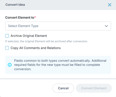Choose the target element type for conversion, e.g., "Innovation Project." - Archive Original Element (Recommended)