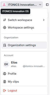 This means that you need to create an "Embed Token". This embed token is created on the settings page of your organization. Navigate to the bottom left and your user profile. Here, you will find the option to enter the "Organization Settings".
