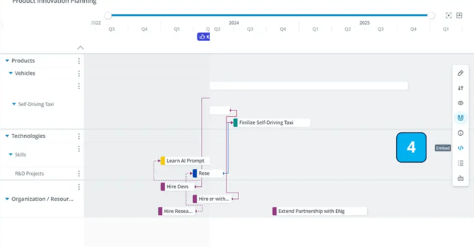 The Embed allows for inserting a single roadmap or multiple roadmaps from your ITONICS Innovation OS into any website.