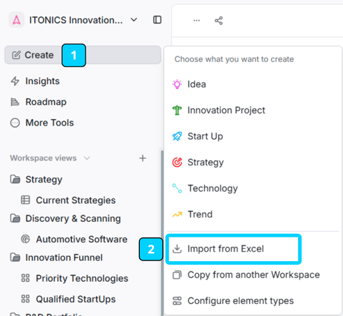 The Excel import allows you to upload your innovation portfolio effortlessly. Easily bring your existing content, ratings, and comments into your workspace.